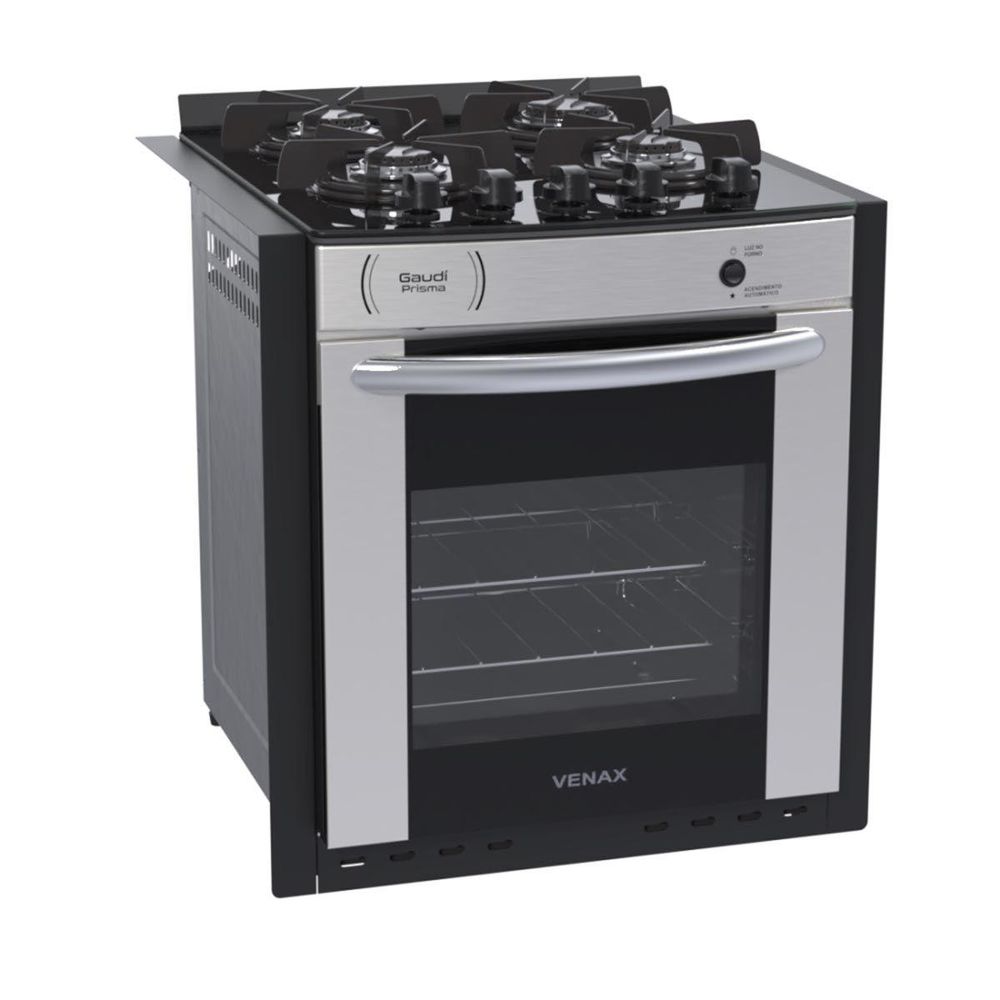 Fogão De Embutir À Gás 4 Bocas Gaudi Prisma Vitreo BL Venax
