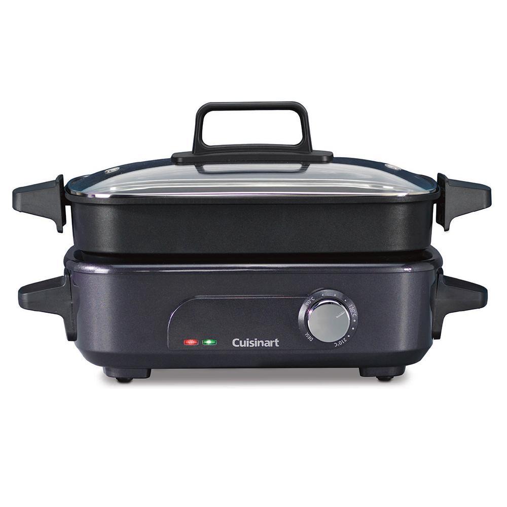 O Grill Multicooker Cook In é tão versátil quanto compacto! É a última palavra em variedade de preparos, cozinhando de 6 maneiras diferentes e substituindo a necessidade de vários aparelhos de cozinha. Na chapa pode-se grelhar carnes e vegetais ou, quando substituída pela grade inoxidável, cozinha facilmente os alimentos no vapor. O recipiente antiaderente de 4,7 litros de capacidade pode ser usado para cozinhar lentamente, assar, grelhar e dourar ou refogar. As temperatura pré-definidas são programadas com o giro de um botão. Nunca foi tão fácil preparar refeições para a família inteira.