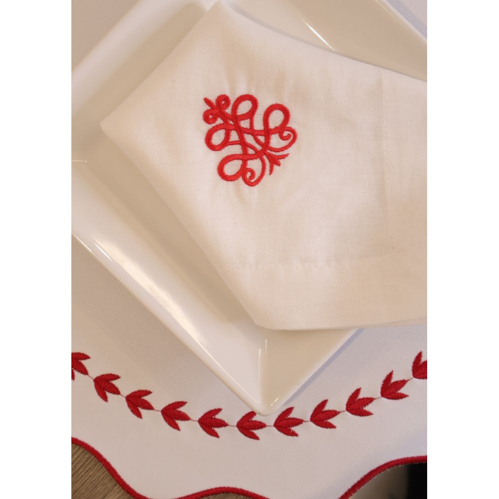 Guardanapo 100% em Linho tamanho 50x50 cor Branco Bordado Edição Natal