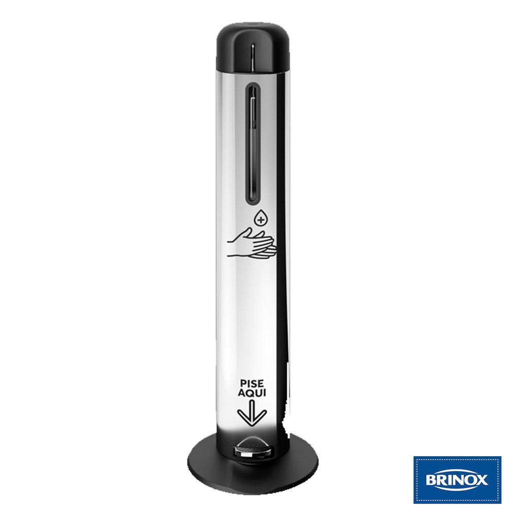Desenvolvido e frabicado pela Brinox, o Dispenser para álcool gel com pedal, da linha Protect é um produto 100% nacional, com estrutura em aço inox (Ø 17cm x 98cm) e base para facilitar o acionamento (em PP com Ø 30cm), o Dispenser é o produto ideal para quem busca mais proteção e praticidade, garantindo a segurança para todos os ambientes. O produto conta também com pump alongado metálico para que o álcool saia verticalmente, evitando o desperdício, tampa em PP dobrável e refil recarregável para álcool gel de 1 Litro. Seu pedal com base em aço inox, facilita o uso do produto, pois evita o contato direto com as mãos. O produto é acompanhado de dois adesivos instrutivos e é ideal para: hospitais e espaços de saúde, restaurantes, supermercados, farmácias, bancos, escritórios, indústrias, recepções comerciais e residenciais, entre outros.