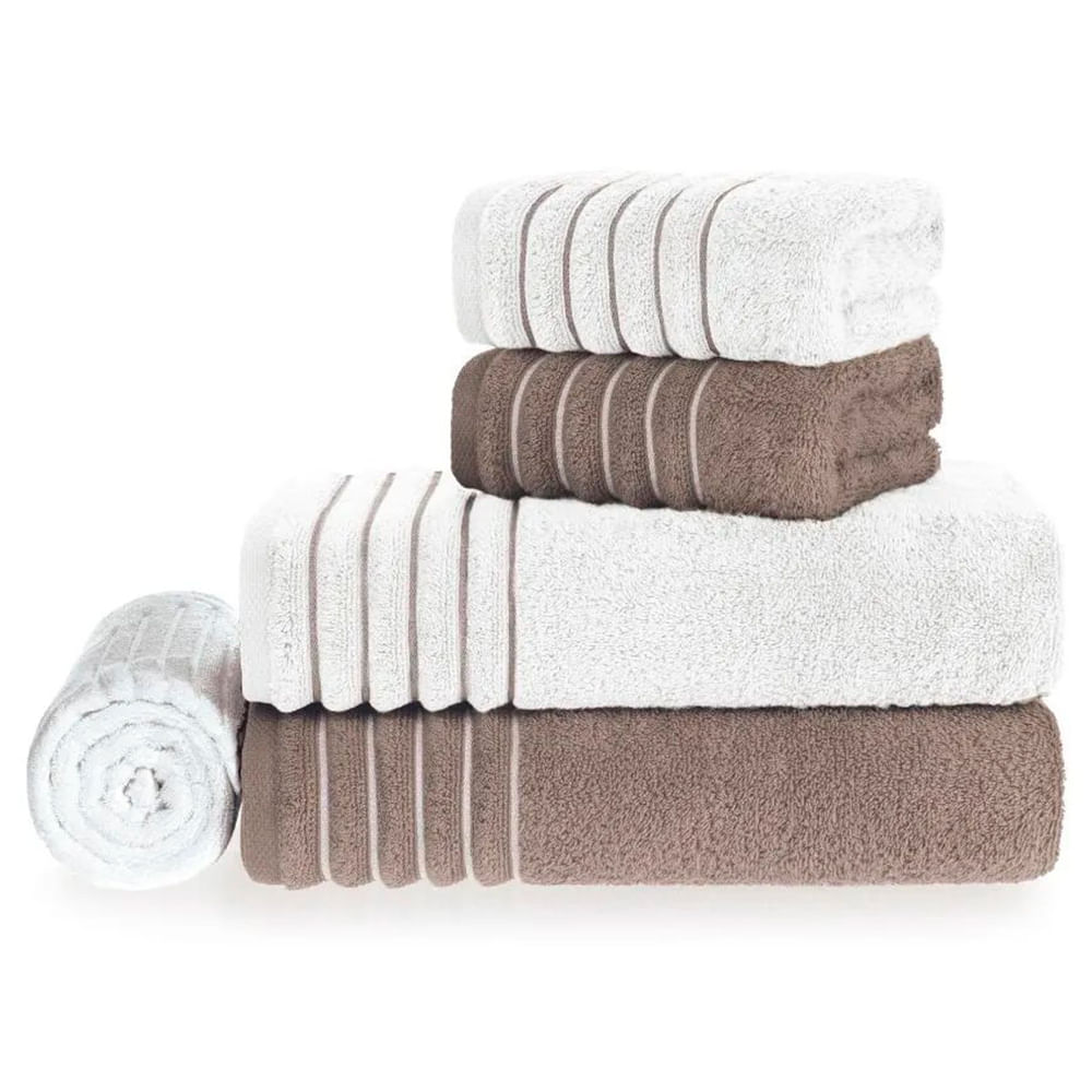 Jogo de Toalhas de Banho com 05 Peças Vision Dual Air Branca e Cinza - Buddemeyer