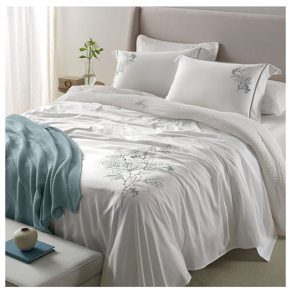 Jogo de Cama King Bordado 200 Fios Percal 100% Algodão Blenda