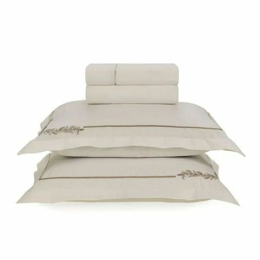 Jogo de Cama Queen 300 Fios 100% Algodão Lara Branco/Areia