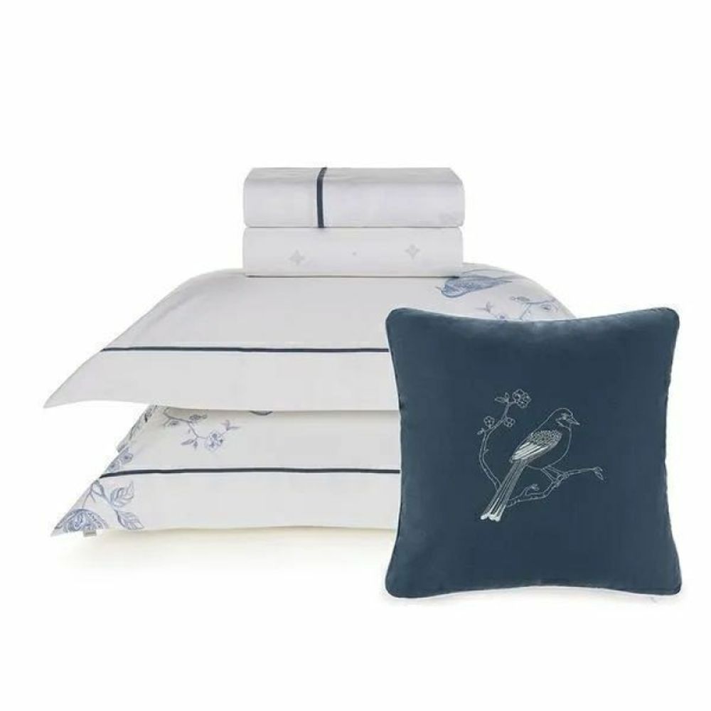 Jogo de Cama King 300 Fios 100% Algodão Lara Branco/Azul