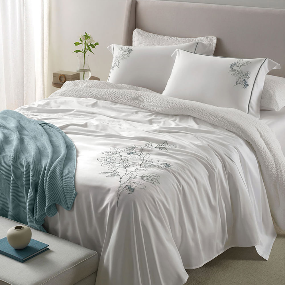 Jogo De Cama Bali Bambu 400 Fios Queen Branco - Kacyumara