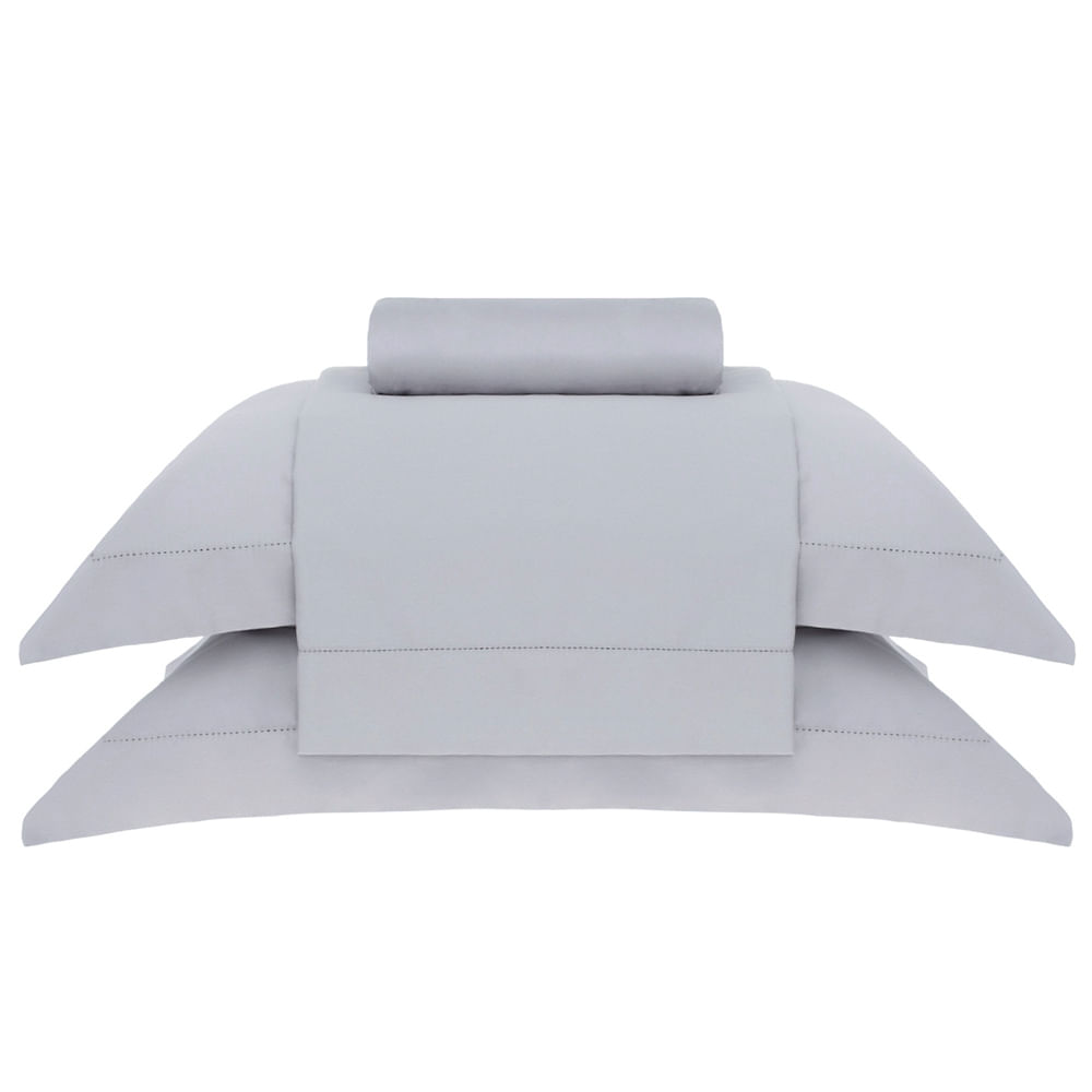 Jogo de Cama King 300 Fios 100% Algodão Lara Prata/Branco