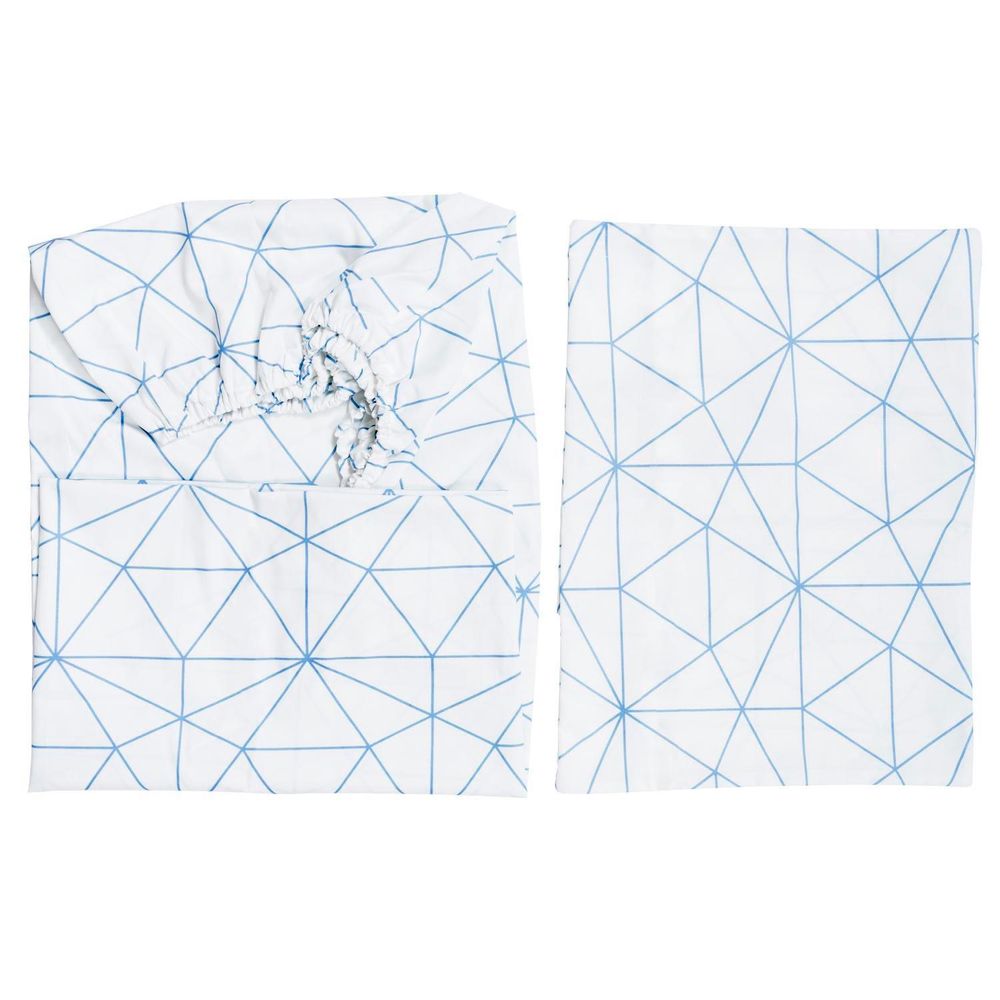 Você está procurando por um jogo de lençóis para deixar o quarto do seu bebê lindo e aconchegante? Apresentamos o Jogo de Lençóis para Berço com 02 Peças Triangulo Azul da Tribeca Enxovais.