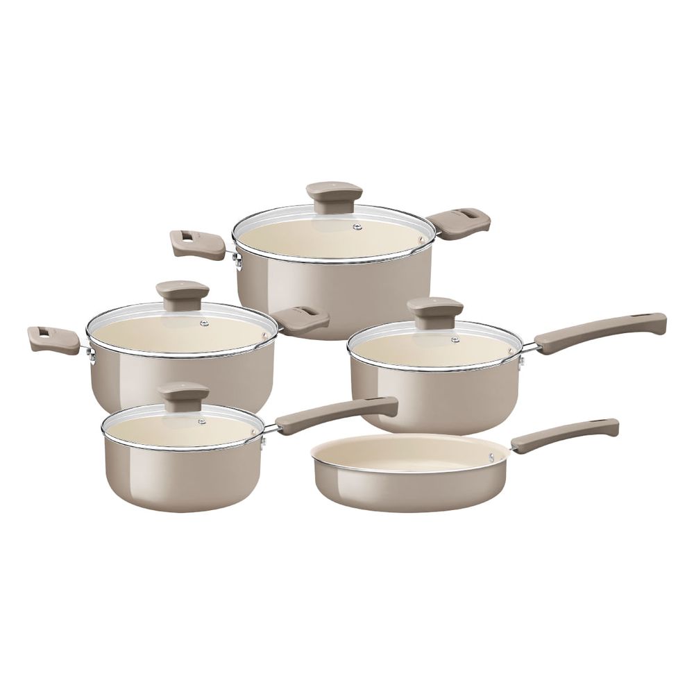 Jogo de Panelas Tramontina 5 Peças em Alumínio com Revestimento Interno Cerâmico Capuccino