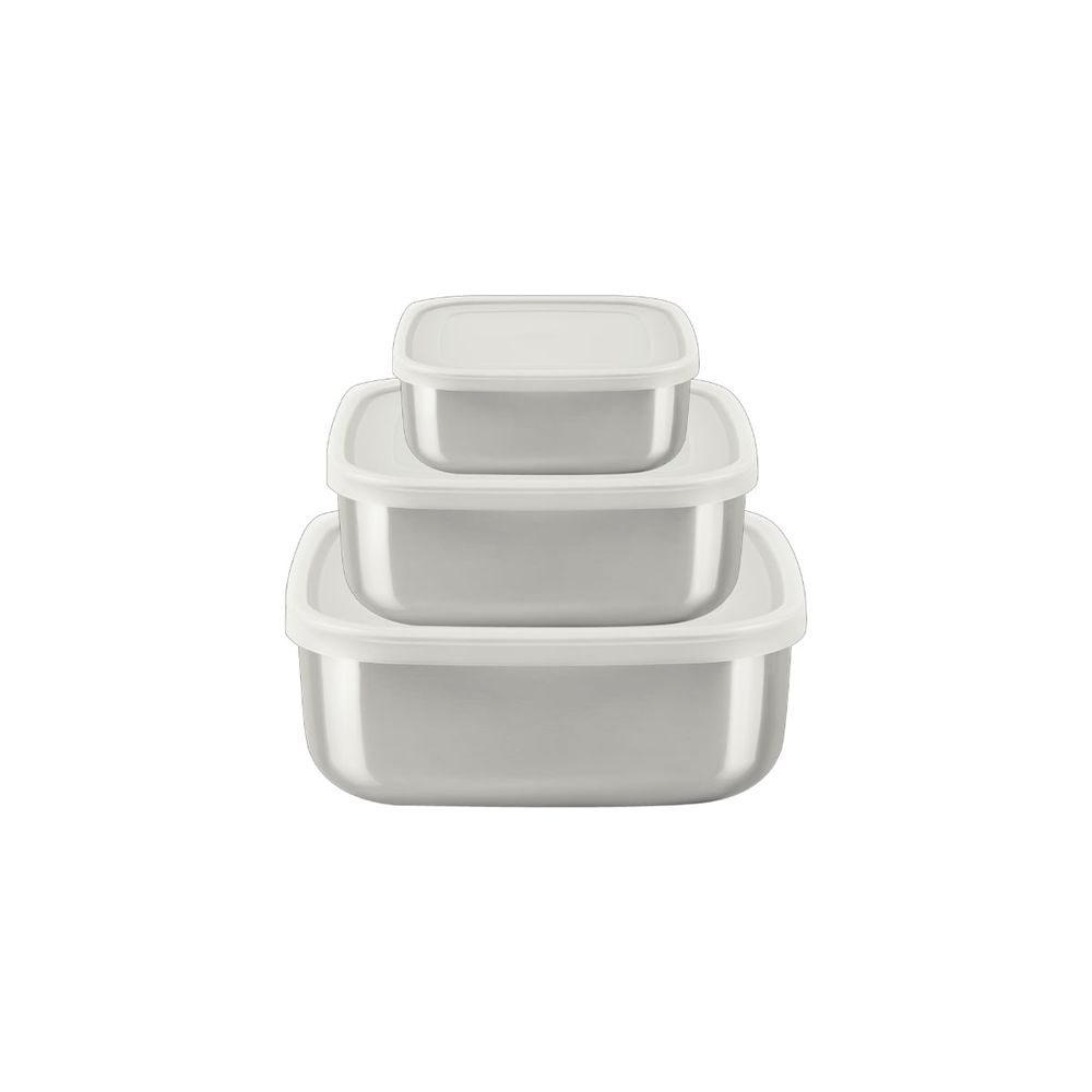 Jogo de Potes Tramontina Freezinox Quadrados Aço Inox com Tampa Plástica 3 Peças