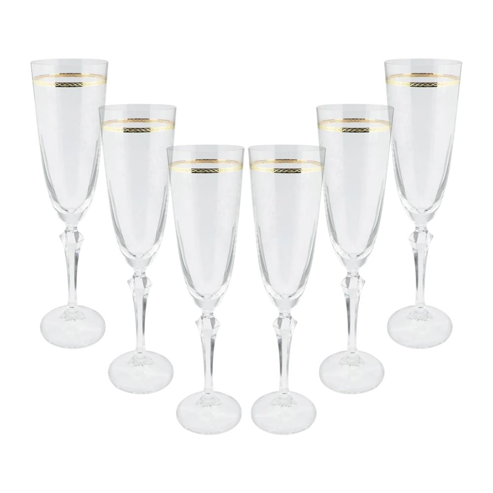 Jogo de taças champanhe cristal ecológico Elizabeth 200ml 6 peças gold rim