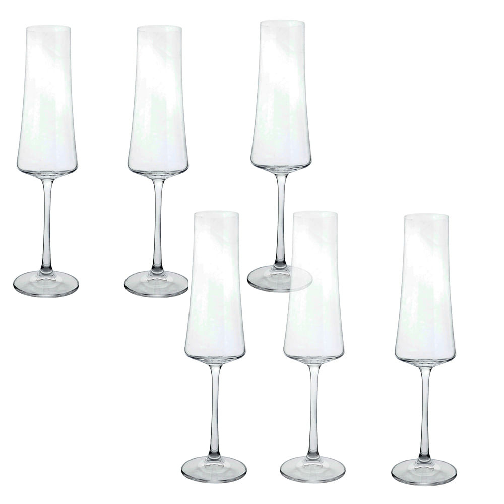 Jogo de taças champanhe cristal ecológico Elizabeth 200ml 6 peças gold rim