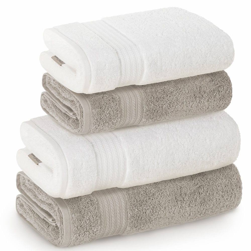 Jogo de Toalhas de Banho Gigante 5 peças Fio Penteado Lumina Branco e Cinza - Karsten