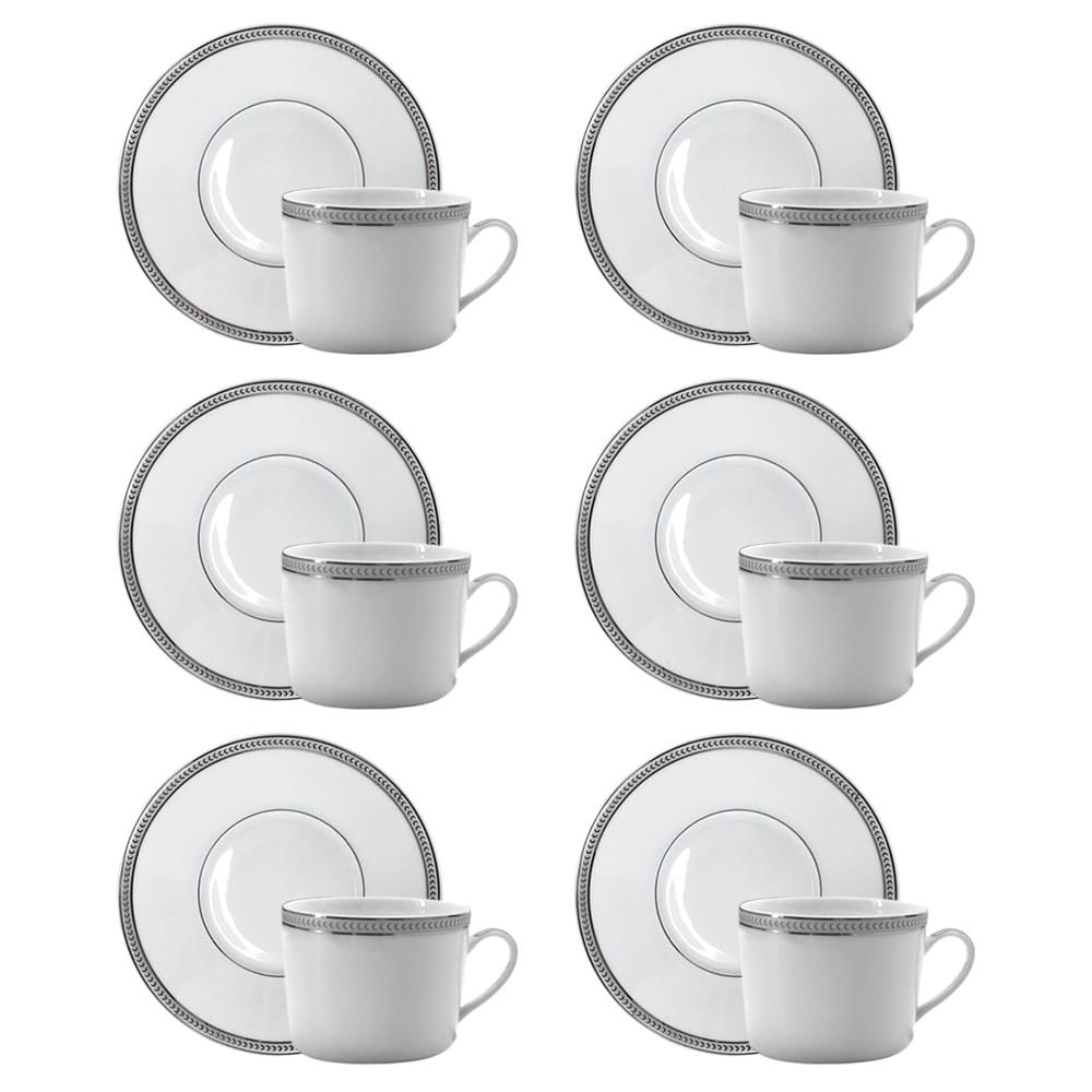 Conjunto com 6 Xícaras e Pires para Chá Tramontina Paola em Porcelana Branca - 240 ml