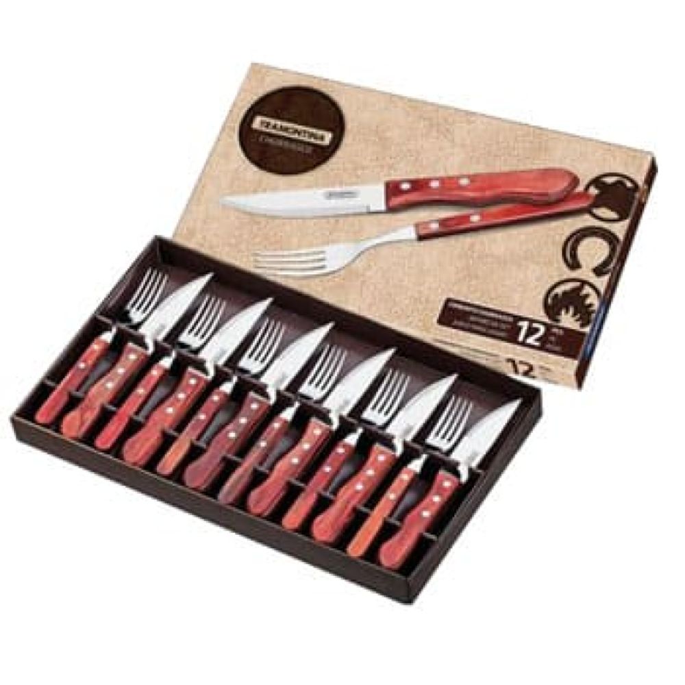 Jogo de Talheres para Churrasco Tramontina em Aço Inox e Madeira Vermelho 12 Peças