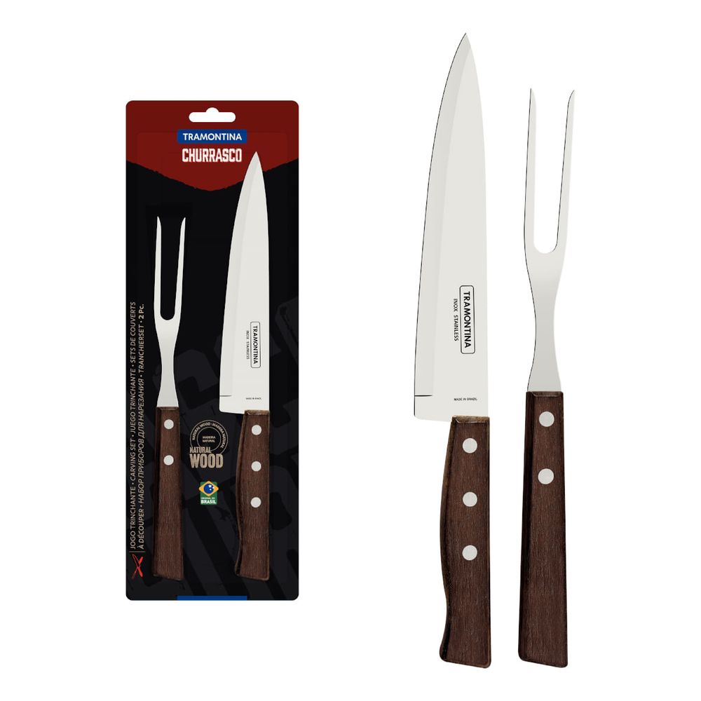 Conjunto para Churrasco Trinchante Tramontina Dynamic em Aço Inox e Madeira 2 Peças