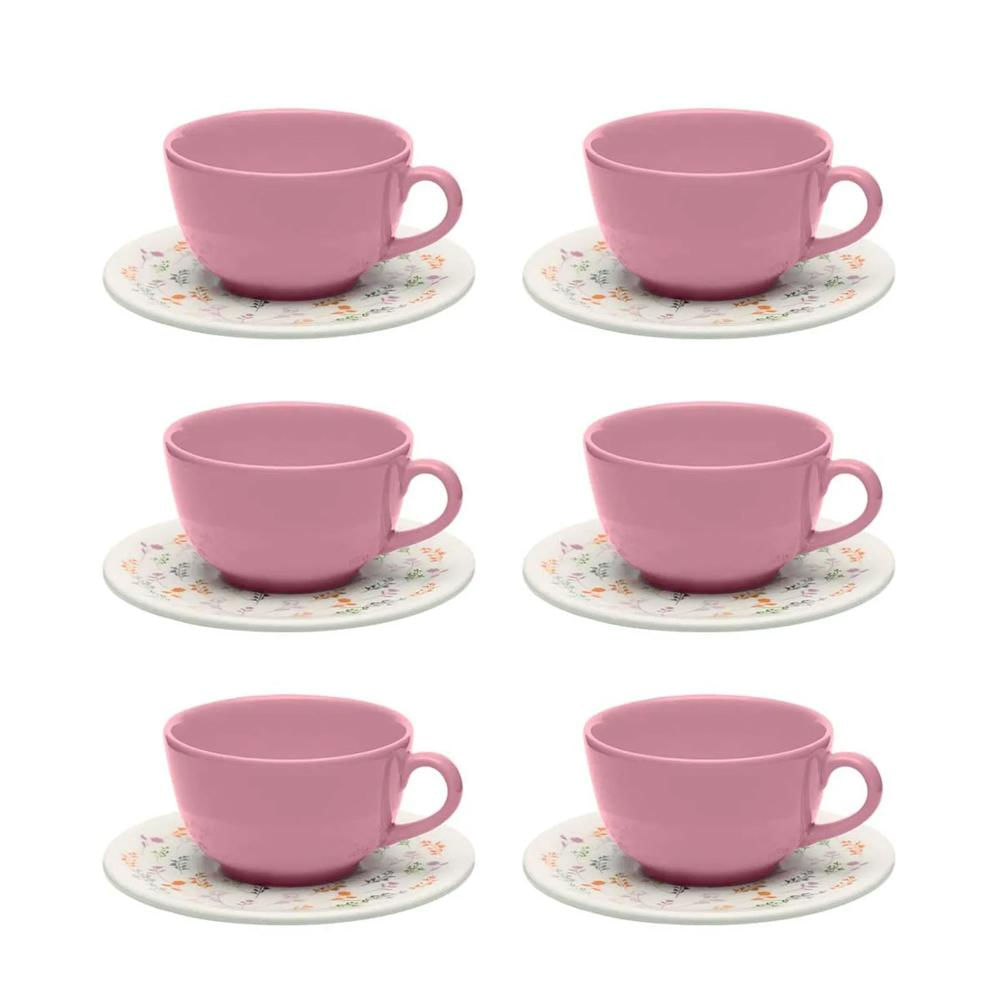 Conjunto com 6 Xícaras De Chá Orgânico 170ml com 6 Pires Descentralizado Glam