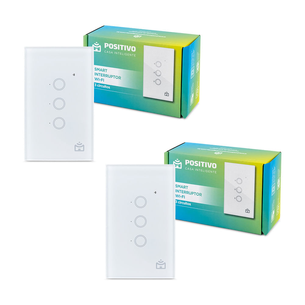 Kit 2 Smart Interruptor Wi-Fi Positivo Casa Inteligente - 3 Circuitos Touch - 2000W - 10A - Google Assistente e Alexa