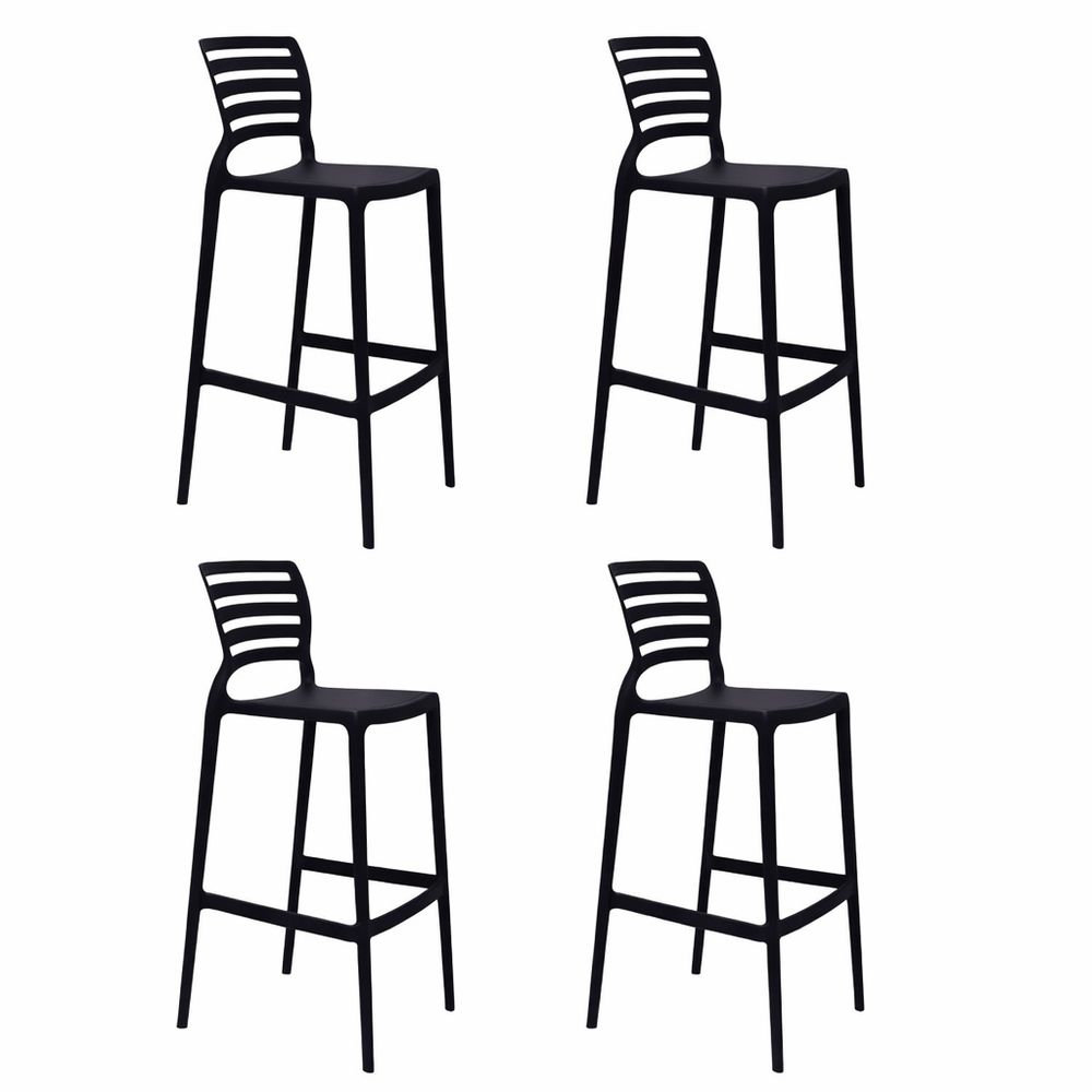 Kit 4 Banquetas Bar Alta Tramontina Safira Preta Empilhável em Polipropileno
