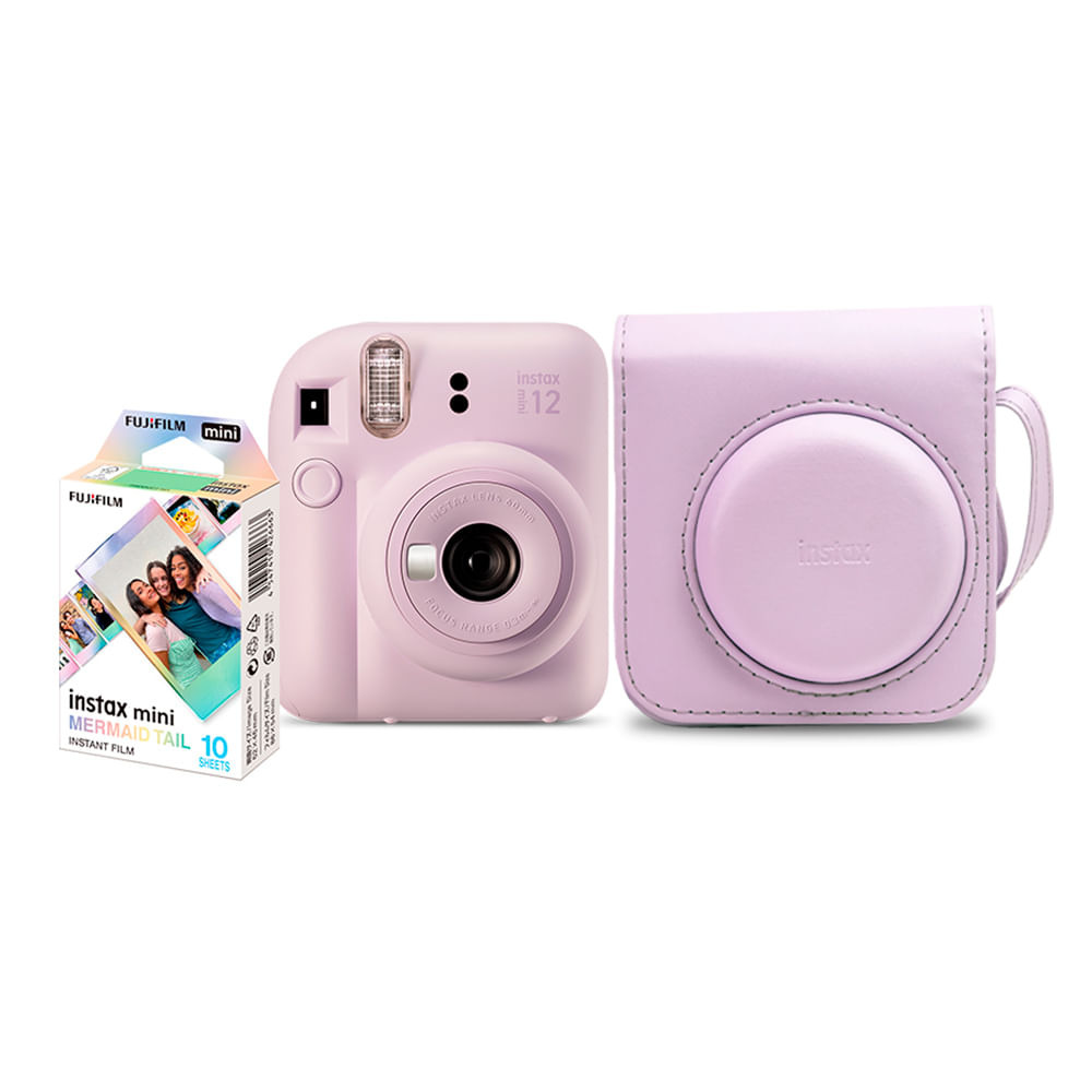 Kit Câmera Analógica Fujifilm Instax Mini 12 Rosa Mermaid com Bolsa e Pack com 10 Filmes