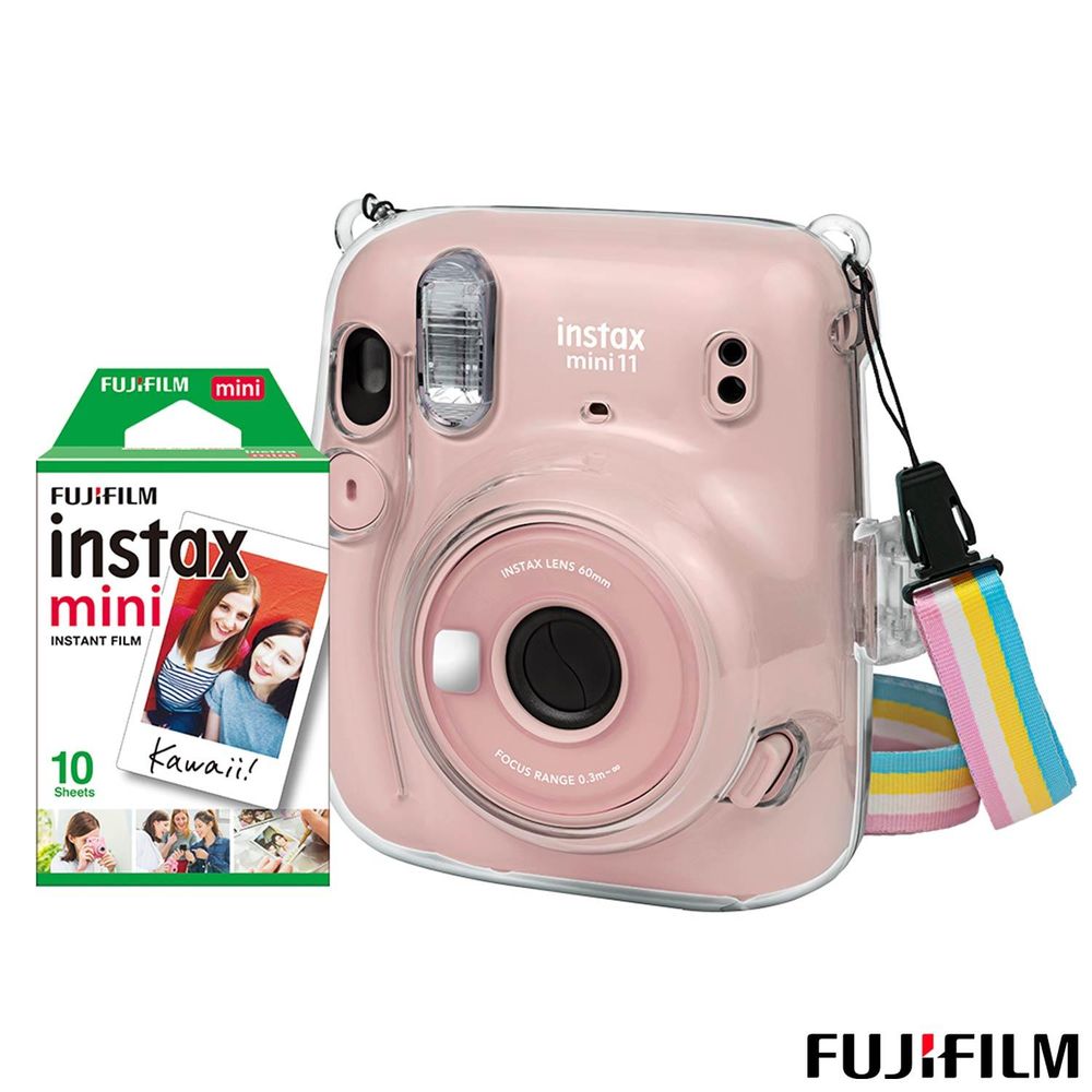 A câmera Instax Mini 11 em uma das 5 cores para você escolher a que mais combina com seu estilo, uma bolsinha Crystal em material transparente com uma alça de ombro super fofa e um pack com 10 filmes! Já amou, né? Nós também! Essa bolsinha Crystal transparente dá um charme todo especial sem esconder a cor da sua Instax!