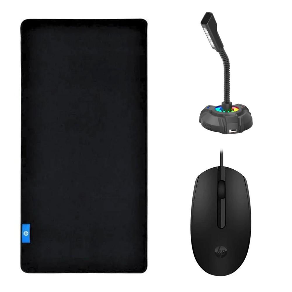 Kit Mouse Pad Speed Gamer + Mouse Óptico com Fio + Headset 7.1 - HP