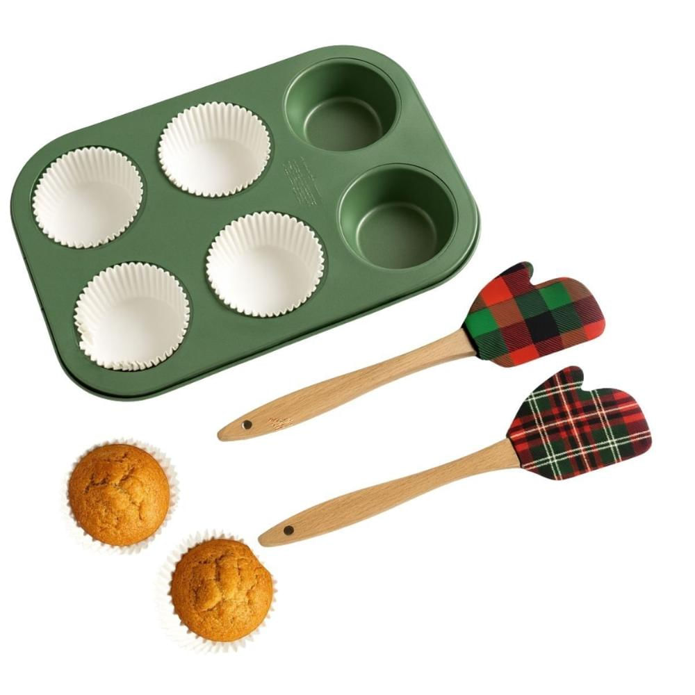 Kit Natalino Forma para Muffin e 2 Espátulas Natal Verde