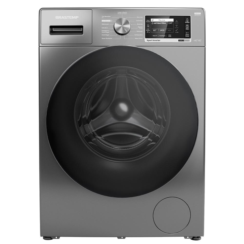 A nova Lava e Seca Brastemp 10kg/6kg conta conta com um design moderno e o Smart Sensor, tecnologia que economiza até 40%[1] de água e energia, definindo o ciclo correto para você. Além das opções com vapor, como o Vaporizar, Lavar com Vapor e Volto Logo com Vapor.