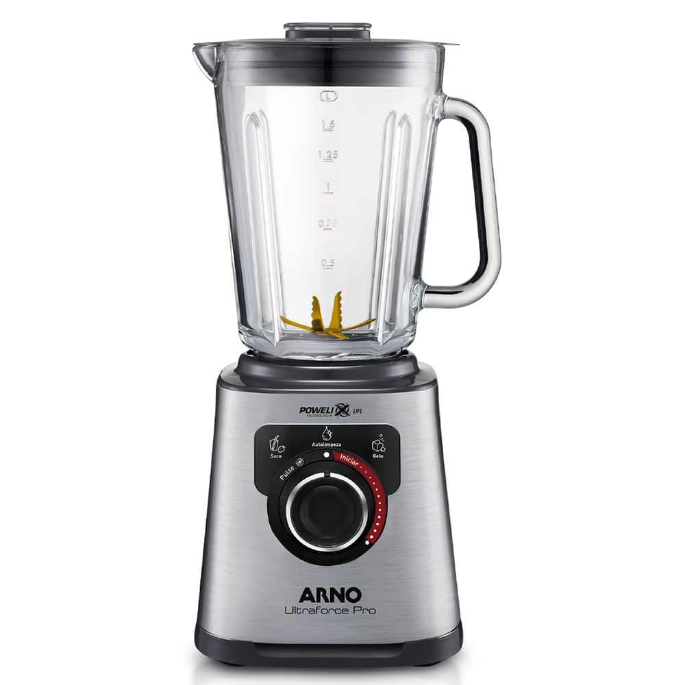 A nova linha de liquidificadores Ultraforce Arno chegou! O novo Arno Ultraforece Pro é para quem procura um produto potente, robusto, durável, além de muita criatividade com o nosso novo app de receitas que pode ser utilizado com os 3 modos pré programados de preparo! São 1100W de potência, com 50% a mais de força em cada giro, combinados as poderosas lâminas Powelix Life - 6 lâminas com alto poder de corte que duram até 2x mais. Sua Jarra de Vidro resistente a choque térmico de 2.0L garante preparos para toda a família, quentes ou frios. A tecnologia Limpa Fácil garante a fácil limpeza do produto, economizando tempo para aproveitar com sua família!