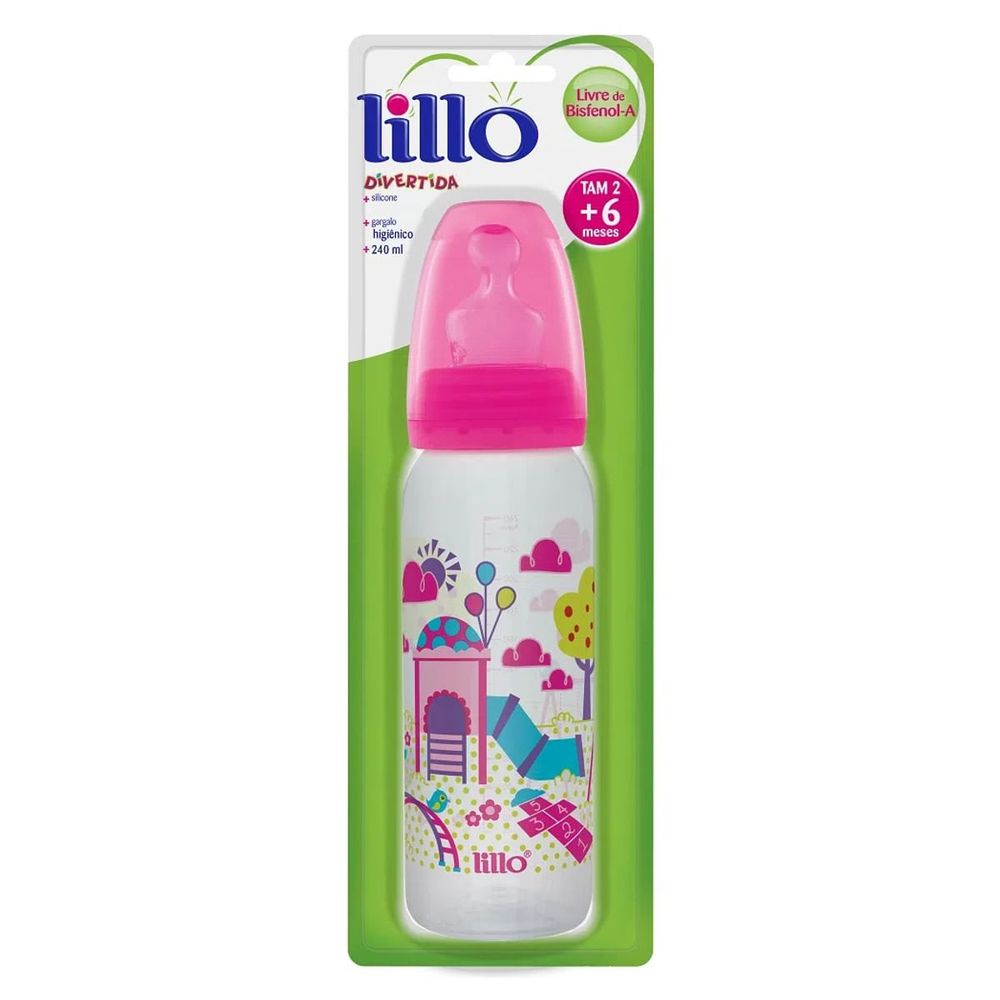 Mamadeira Rosa Divertida Bico Silicone 240ml Tam.2 - Lillo