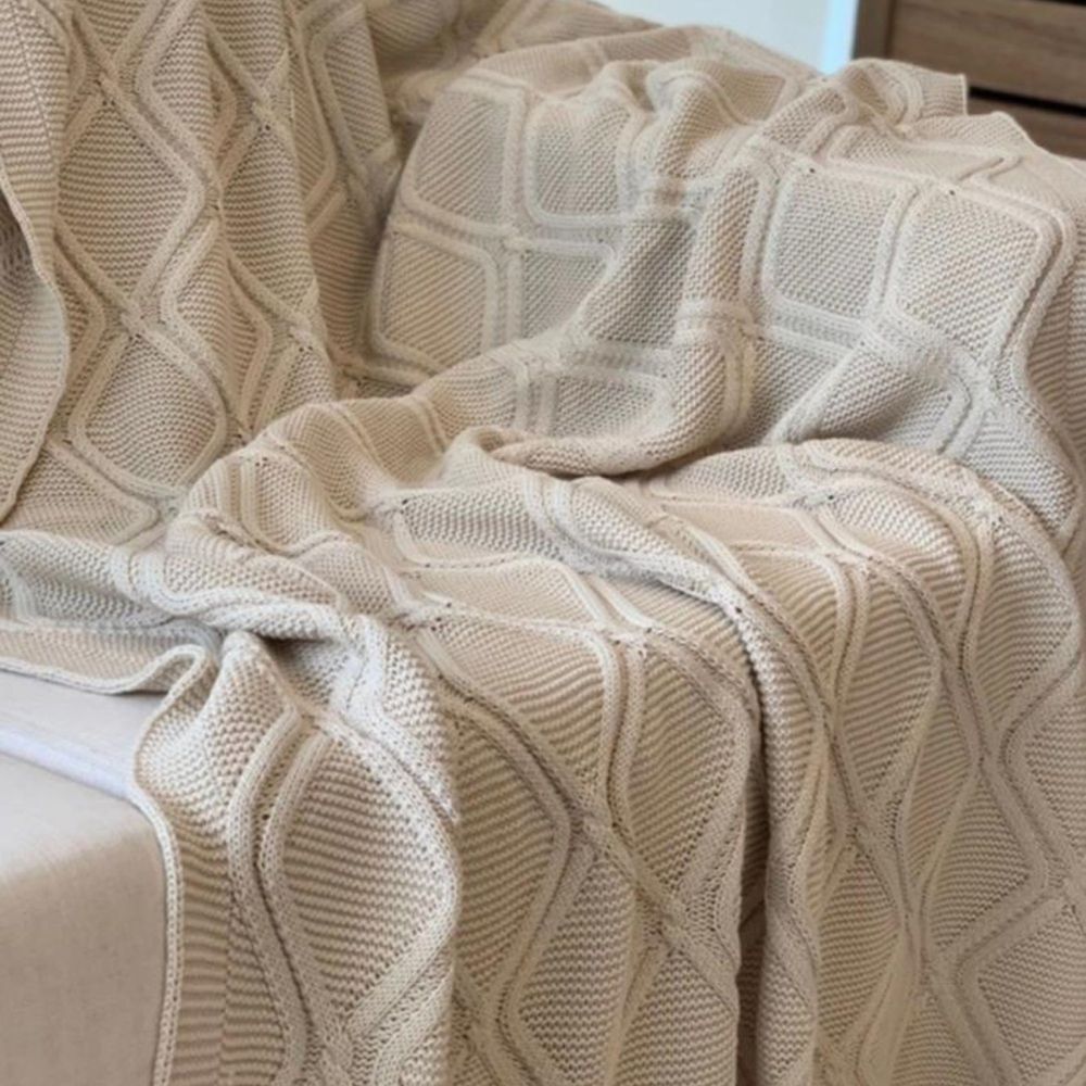 Manta Trança Branca - Ideal para Camas e Peseiras