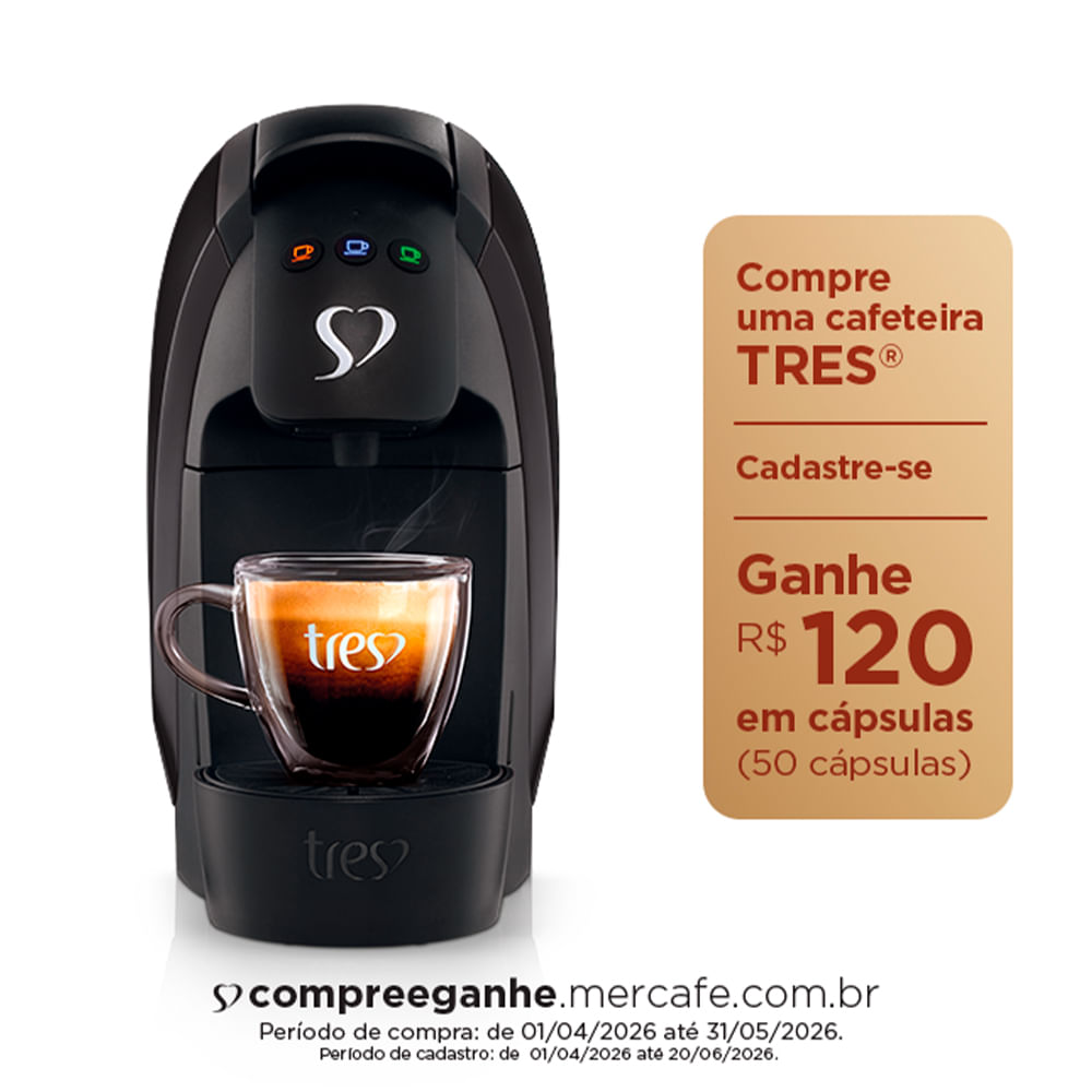 A Tres® une sabor, tecnologia e praticidade para oferecer a melhor experiência de extração de bebidas em cápsulas ao simples toque de um botão. A Tres® é a solução de cafés espressos e multibebidas do grupo 3corações e possui a maior variedade de cafés espressos e bebidas em cápsulas do Brasil. São mais de 40 opções, todas elaboradas cuidadosamente com ingredientes selecionados para garantir a qualidade da bebida na xícara. Com sistema inovador de extração, oferece excelentes cafés espressos e filtrados, chás naturais, cappuccinos, chocolate quente e café com leite, preparados a partir de uma única cápsula. As cápsulas e máquinas do sistema Tres® são livres de BPA.