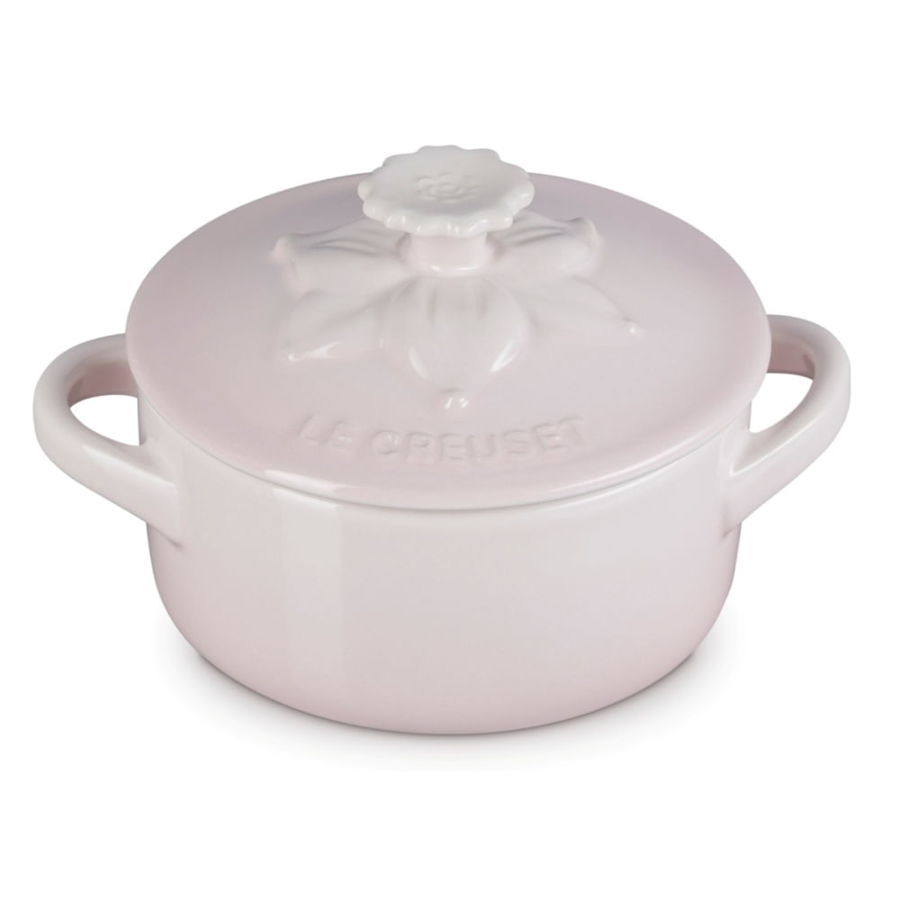 MINI COCOTTE LE CREUSET JARDIN 250ML 10CM EM CERAMICA COM RELEVO SHELL PINK 80043257770003