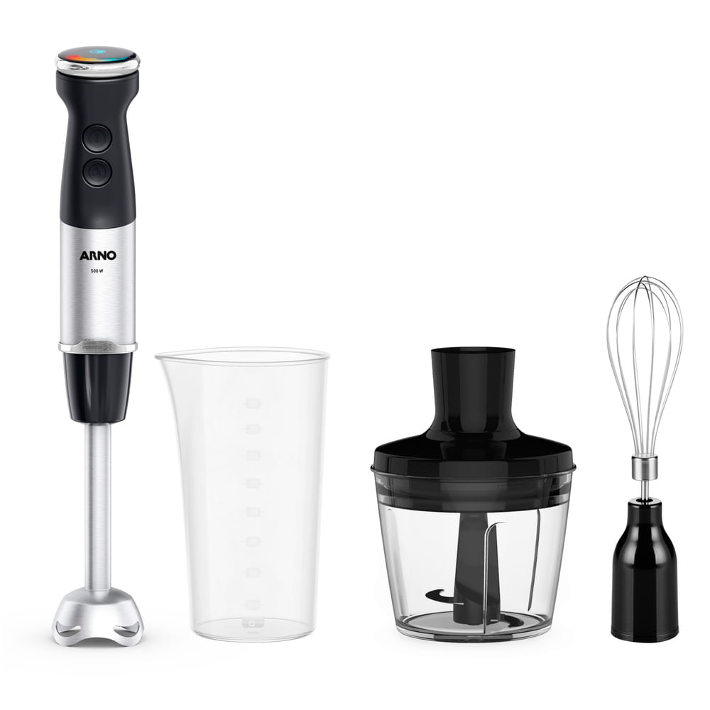 Arno Quick chef +, com tecnologia Powelix é a escolha perfeita para quem busca desempenho, praticidade e silêncio na cozinha. Com motor de 500w, ele garante até 3 vezes mais eficiência* no preparo de receitas, triturando até os ingredientes mais duros com facilidade. A tecnologia Powelix oferece alto poder de corte, com lâminas ultra afiadas que entregam resultados rápidos e homogêneos em qualquer tipo de preparo. Com painel digital com 20 velocidades, você tem o controle total, adaptando o uso conforme a textura desejada. O modo silencioso permite preparar suas receitas com conforto, ideal para uso diário sem incômodos. Acompanha 3 acessórios essenciais: copo medidor de 800ml, processador de alimentos de 500ml e batedor de claras, perfeitos para preparar desde smoothies, até chantillys e massas leves. Além de potente, o mixer feito em aço inoxidável é prático: pode ser usado diretamente na panela, seu pé é removível, facilitando a limpeza, e o design com protetor anti-respingos evita sujeiras indesejadas. Compacto, ergonômico e fácil de guardar, o Quick Chef+ é seu aliado para preparar molhos, sopas, sucos, purês e muito mais, com agilidade, eficiência e a qualidade que só a Arno oferece.