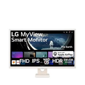 Monitor LG 32” MyView Smart 32SR50F-W com Tela IPS, Full HD, WebOs, Screen Share, HDR10, ThinQ, Air Play 2, Bluetooth, USB e HDMI - Branco