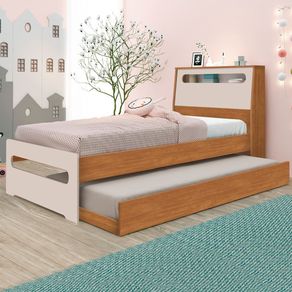Bicama Solteiro Barreto Manu com Baú - Nature/Off White