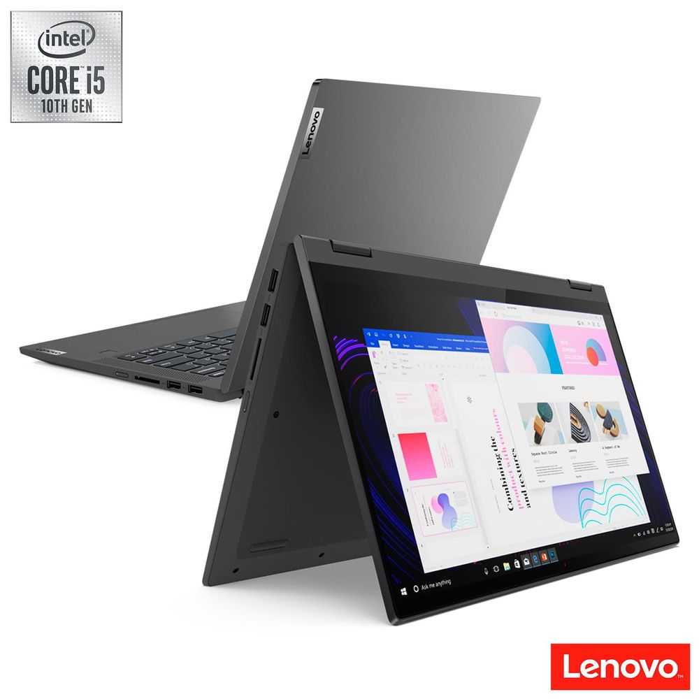 Notebook Lenovo 2 em 1 Ideapad Flex 5i com Intel® Core™ i5-1035G1, 8GB de memória, 256GB SSD de HD, Windows 10, tela de 14" FULL HD IPS, privacidade Webcam e Leitor de Impressão Digital, 81WS0002BR Grafite.
