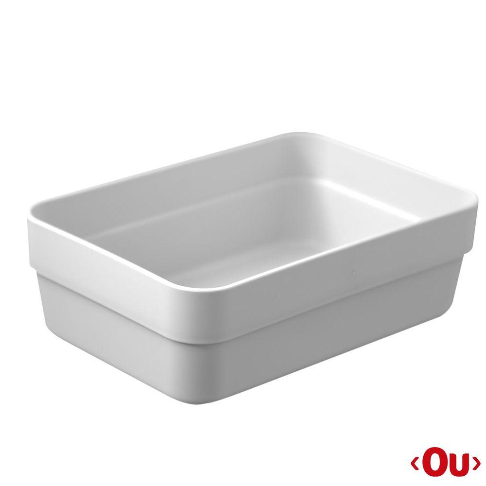 Material com alta resistência a impactos e ao calor. Não transfere odor. Atóxico, resistência à água fervente, suportando até 150°C. Prático e excelente organizador.