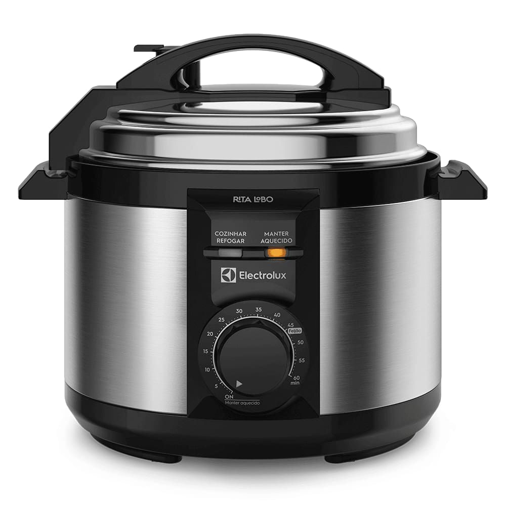 Panela de Pressão Elétrica Electrolux Efficient PCE15 Rita Lobo 3L –Segurança, praticidade e muito sabor! Com capacidade de 3 litros e potência de 700W, esta panela permite preparar desde arroz, feijão até carnes e caldos de forma rápida e eficiente. Cozinhe na panela de pressão sem medoEsta panela vem equipada com 9 dispositivos de segurança, que controlam automaticamente pressão e temperatura internas, garantindo tranquilidade total durante o preparo de qualquer alimento. SilenciosaEla também trabalha de maneira silenciosa evitando ruídos incômodos, transformando a experiência na cozinha.TimerCom timer de até 60 minutos, basta selecionar o tempo desejado e deixar que a panela cuide do restante. Ao final, o desligamento automático ativo a função Manter Aquecido, que conserva a refeição na temperatura perfeita até a hora de servir. Cesto interno RemovívelO cesto interno removível e antiaderente de 3 litros é fácil de higienizar, e o design em aço inox escovado garante sofisticação, resistência e durabilidade. Alças antitérmicas Alças antitérmicas não aquecem durante o cozimento e promovem mais segurança para você e sua família. Experimente a praticidade, segurança e elegância com a Panela de Pressão Elétrica Electrolux Efficient Rita Lobo.Conheça mais produtos Electrolux e complete a sua cozinha!