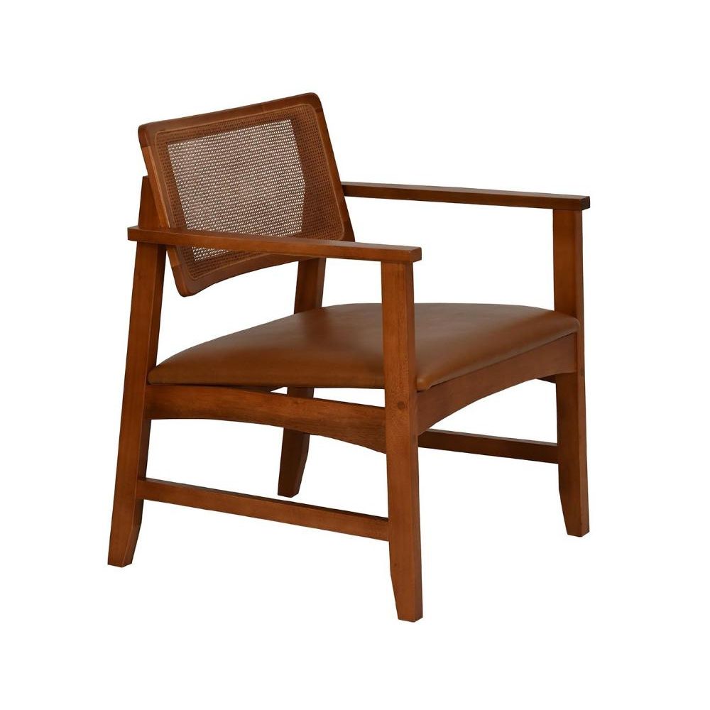 Poltrona Bruxelas Em Madeira Maciça e Estofada 70 x 71 x 87 cm (A x L x P) - Cor Castanho Tecido Corino 133A