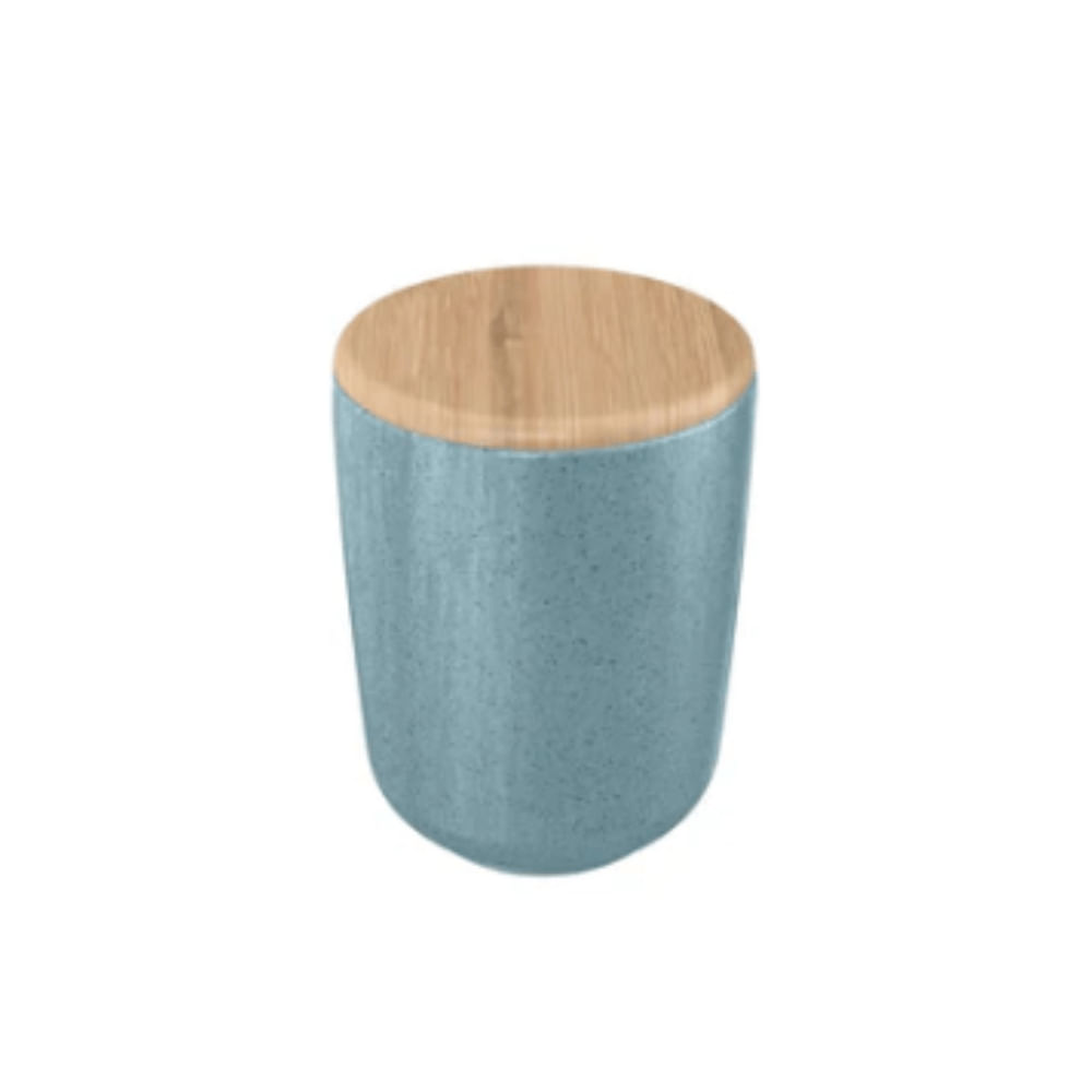 Porta Algodão Com Tampa Em Bambu Osaka Azul Marinho - Ou