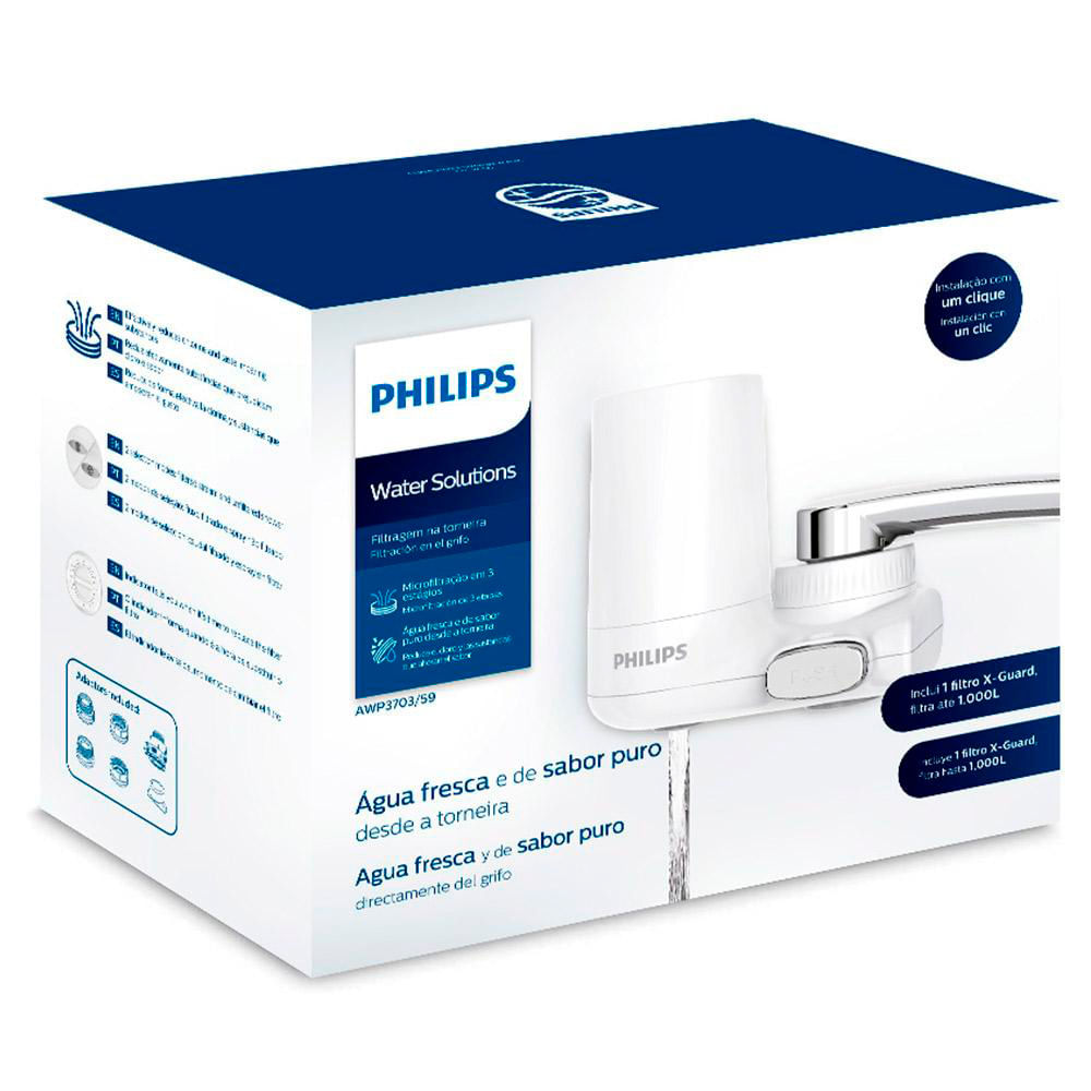 Você quer ter água pura e cristalina diretamente da torneira? O Purificador de Água Philips para Torneira - AWP3703 é a solução perfeita para você. Com o sistema de microfiltração Philips X-Guard, ele reduz até 99% do cloro e de substâncias que alteram o sabor, proporcionando uma água de qualidade para toda a família.