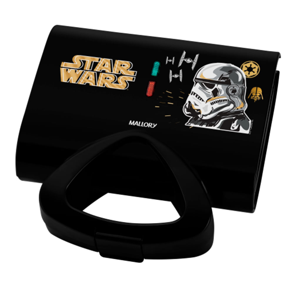 A Sanduicheira STAR WARS EMPIRE PLATES da Mallory conta com placas com design exclusivo para deixar sua refeição mais divertida, preparando lanches rápidos, ainda, possui grande superfície antiaderente duplas que permite assar ambos os lados uniformemente, possui luzes led indicadoras de funcionamento e temperatura, alça com toque frio, trava de segurança e pés antiaderentes. Item indispensável para sua cozinha! Produto exclusivo e licenciado Disney/Lucas Film
