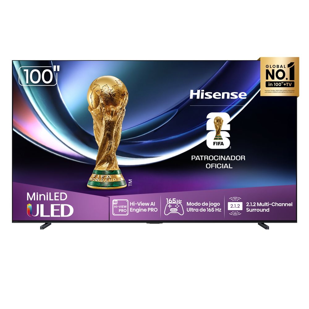 Smart TV 4K Hisense Mini LED 100” Polegadas, Processador com AI, Modo Jogo, 144Hz e Wi-Fi - 100U7Q
