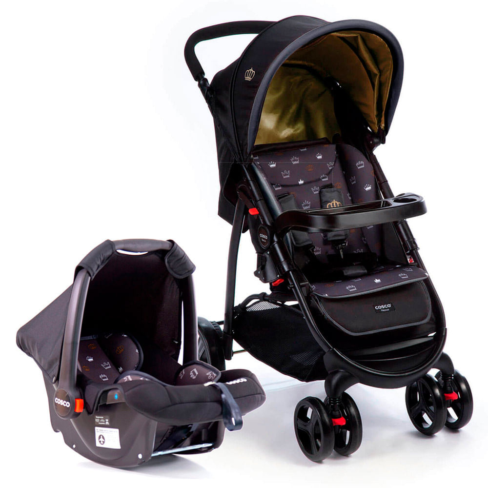 Carrinho com Bebê Conforto Travel System Reverse Duo Preto Onda - Cosco