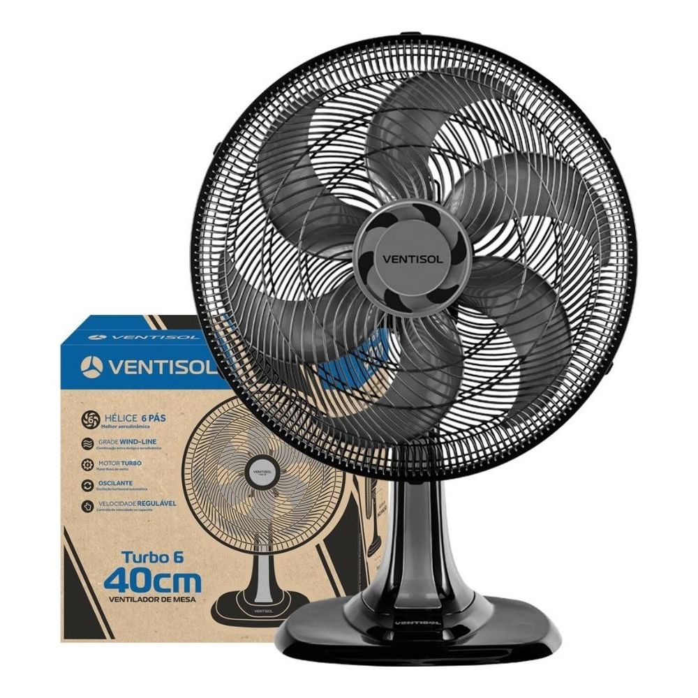 Ventilador de Mesa Oscilante Ventisol Turbo 6 Pás Premium, Preto, 40cm, 127V